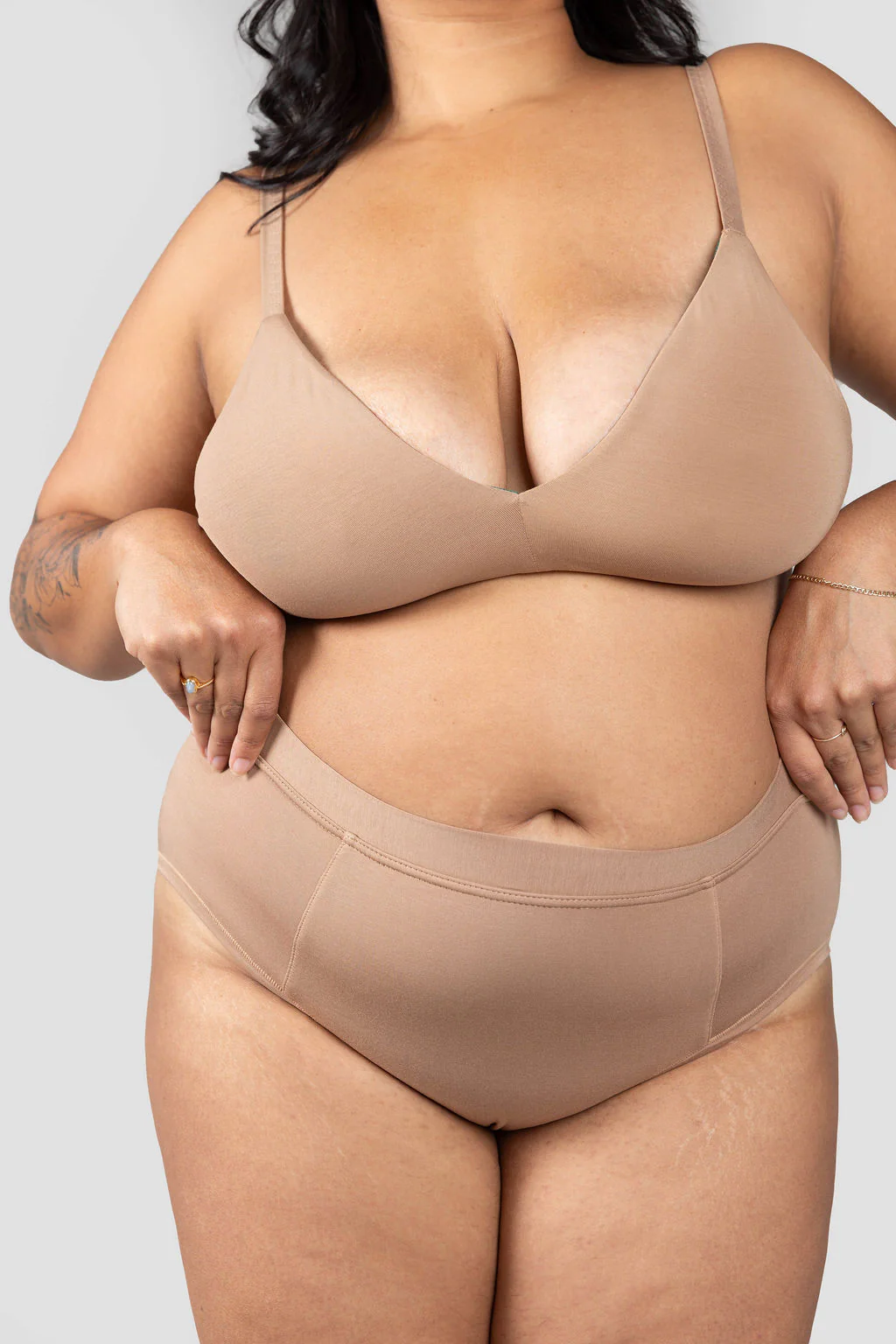 Our Brief delivers next-level comfort whether you’re lounging or on the go. With our highest rise, wide-cuffed waistband, and supportive front panel, this cut feels like a hug and minimizes pressure on the lower abdomen. The modest-cut leg is elastic-free to keep you moving freely—with just a peak of cheek.
